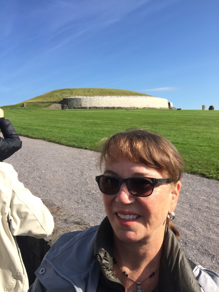 Another sunny day in Dublin…..took a trip to New Grange a Neolithic era tomb. Pretty amazing– over 5000 yrs old. It is built so the sun comes in at day break once a year on the winter solstice. I entered a lottery to be one of 50 winners who get to enter and bring a friend. Last year they had 33,000 entries.