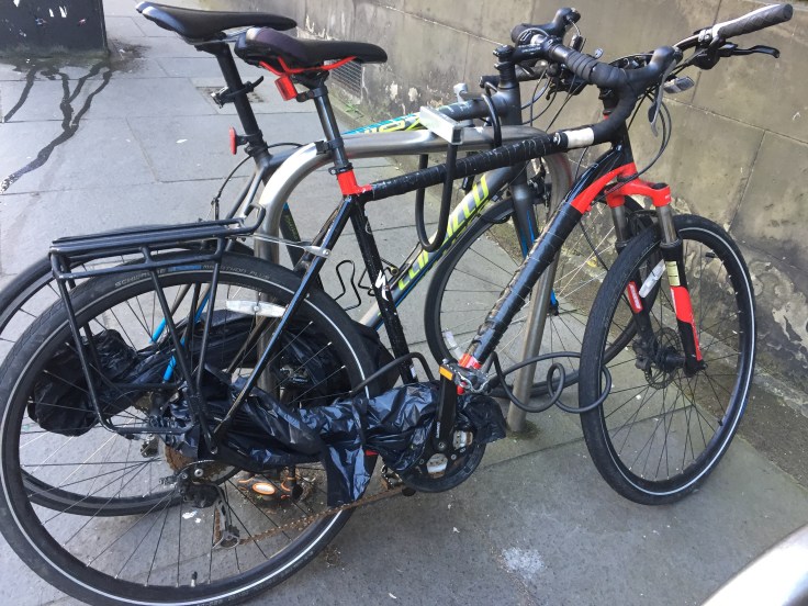 I guess that’s a good way to put it.  Only a few moments of what you (us) call rain.  Mostly “drips”.  People would pull there hoods up (or not).  A few would open umbrellas and a good majority would just “keep on walking”.  to prove my point–the bicycle crowd doesn’t cover there seats with plastic bags—only there chains.