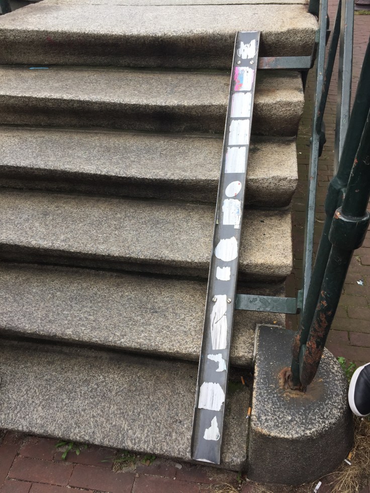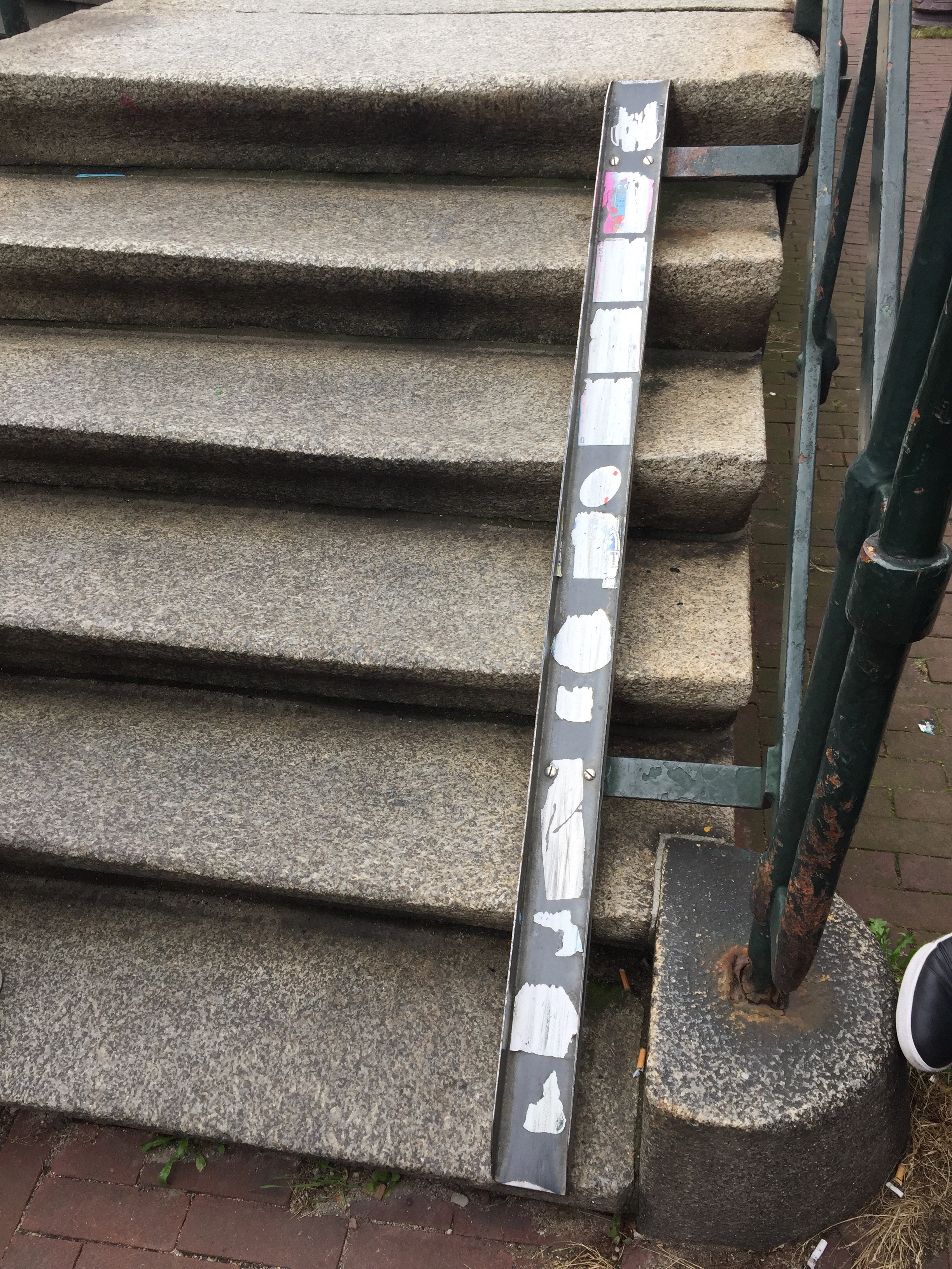 A bike ramp on steps in the city: