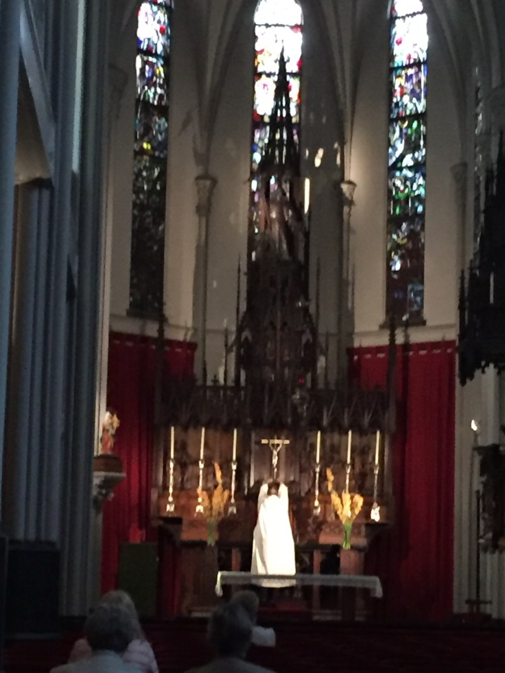 I had a picnic lunch on a bench by a canal and finally figured out where I was. I walked the pedestrian shopping street in the afternoon and right in the middle, across from McDonald’s I found the “church of the parrot”. Years ago, Catholic Churches were tolerated if they were not too obvious. This is the first I found. It is amazing; you walk thru a little revolving door and you are in a big church: