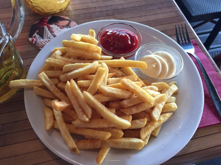 I took a walk to the center and found a nice cafe for a beer and French fries.  In the square, a concert by an orchestra was going on for about 1 1/4 hours and it was just delightful.  I have to learn ml’s vs ounces…I thought I order a pint.  Bruges is a fairy tale place.