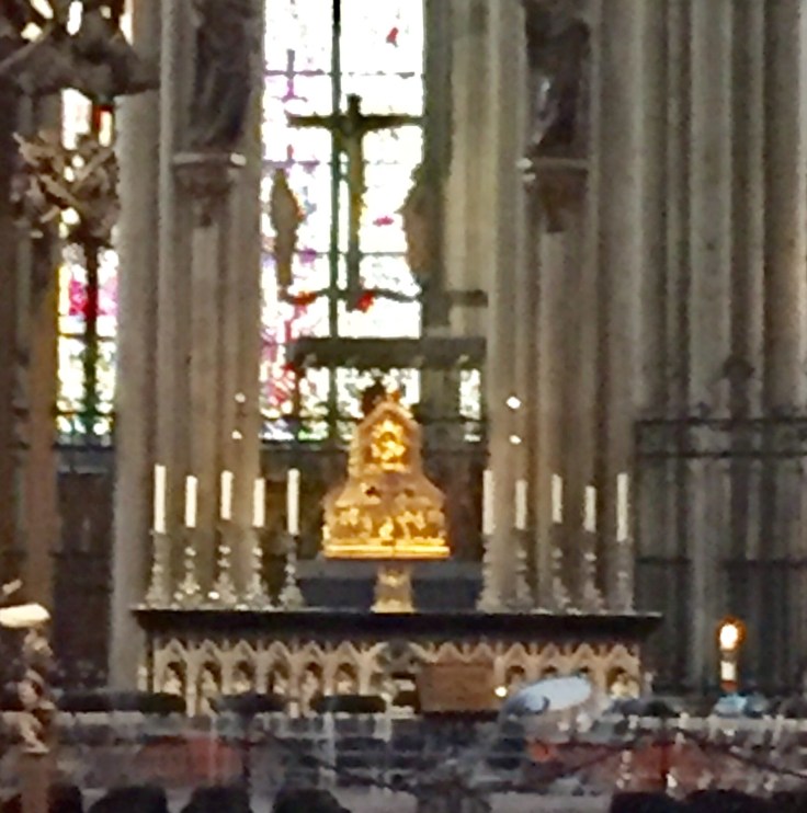 My second day I spent time inside the Cathedral. There was a prayer service with a visiting choir. It took 600 years to build (they did take about 300 years off in the middle). The main reason for the church is to house the relics of the Three Kings. The relics are in the gold tabernacle behind the altar.