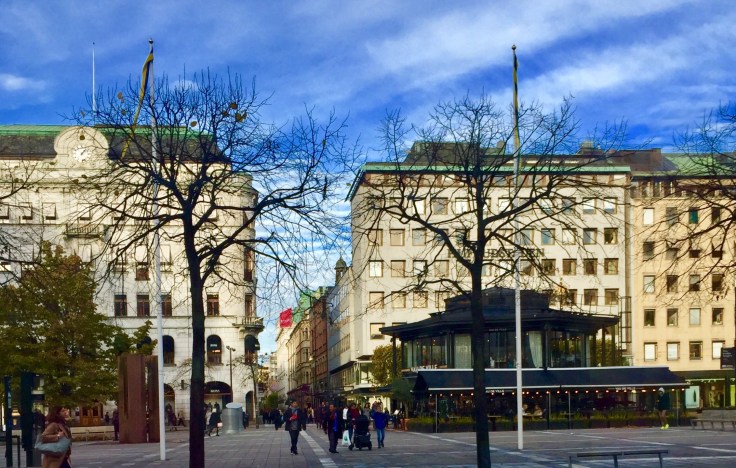 I took the hop on hop off bus and explored the city. This is the square where the bank that was involved with the infamous robbery that occurred in 1973 is located. The bad actor and his gang held five hostages in a vault for 6 days and the hostages “sided” with the bad guys– thus Stockholm Syndrome: