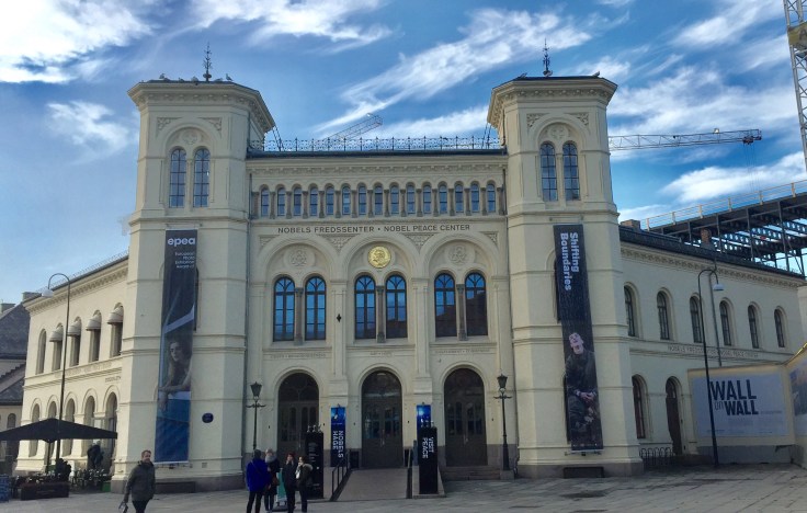 Norway and Sweden were one country when Nobel wrote his will so the Norwegian legislators vote on the Prizes and the winners are announced in Norway at this building: