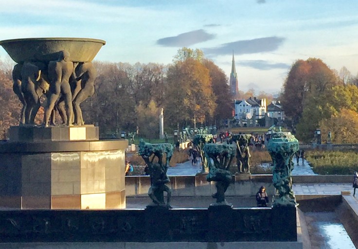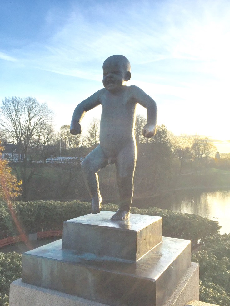 After a break and lunch (cauliflower wings and a glass of Guinness at the Hard Rock Cafe for $33) I was on to my next adventure. This involved buying a transit pass and finding my way out of the center of Oslo to a very famous sculpture garden. At the metro, I was directed by the “official info person” to “go out of the metro, turn right and take the tram”. Of course, nothing could be that simple, but I’m on to them and I had the name of where I wanted to go written on a “cheat” sheet and I showed it to folks along the way and found the tram I was supposed to take. ( I think this puzzle of finding where I want to go is something I’m going to miss at home).