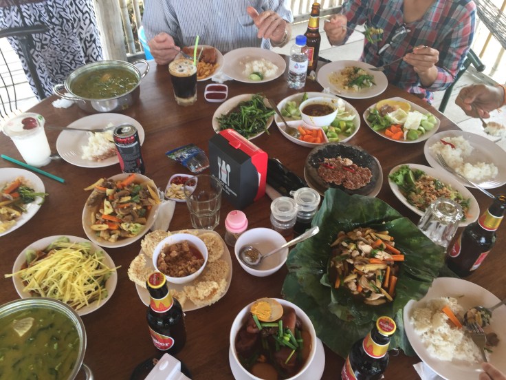 Traveling in Cambodia is like going back in time to an exotic place overrun with motorcycles and small stalls/stores. We took the mini-bus to our “home-stay” in a new province with a stop for lunch along the way: