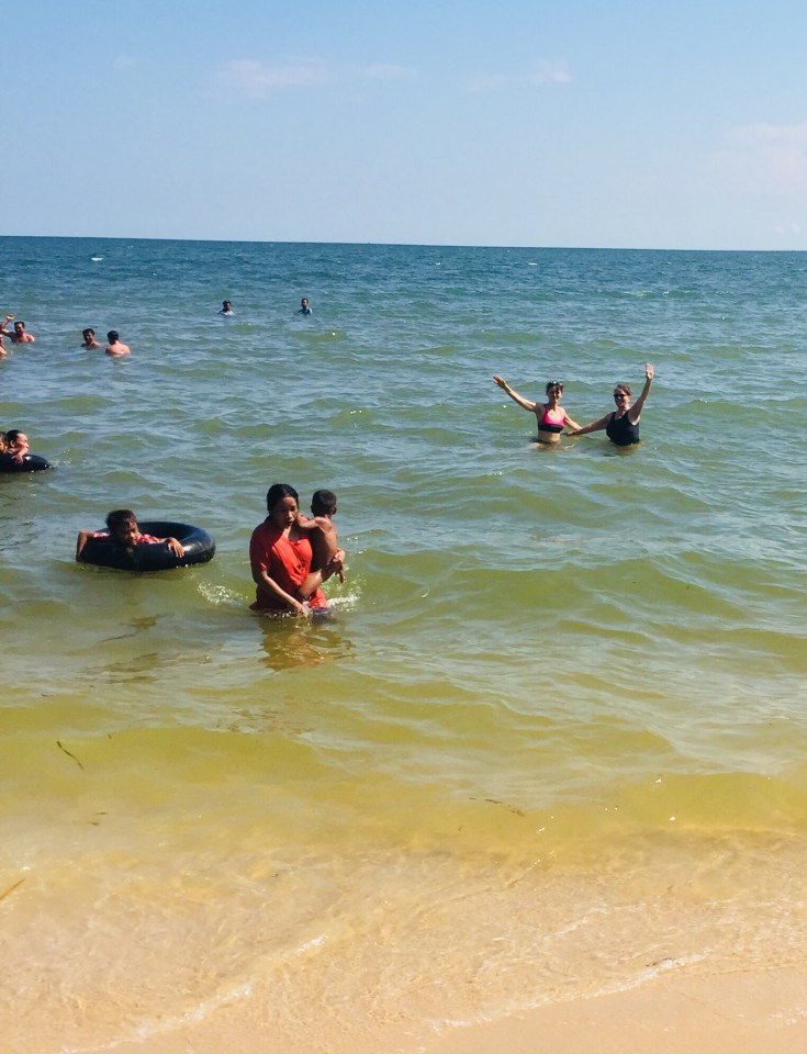 We are doing some local sightseeing and going to the beach the next few days. We stopped for a picture as a group in front of the Durian statute. We visited salt fields and a pepper farm–Kampot is famous for pepper. We finished our day with a swim in the Gulf of Thailand.