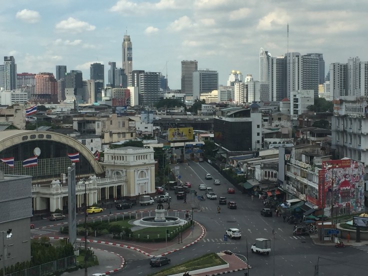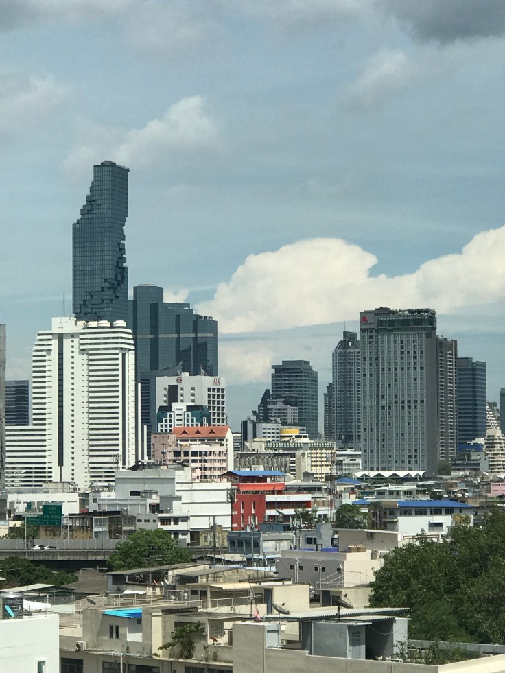Bangkok is a city with 6 million people that swells to 15 million with commuters (Thailand total population is 55 million). It is called “the Venice of the east” because of the canals. You can see skyscrapers every way you look with a lot of buildings going up. This is a view from my room–see the train station on the left and part of this gigantic city in the background.