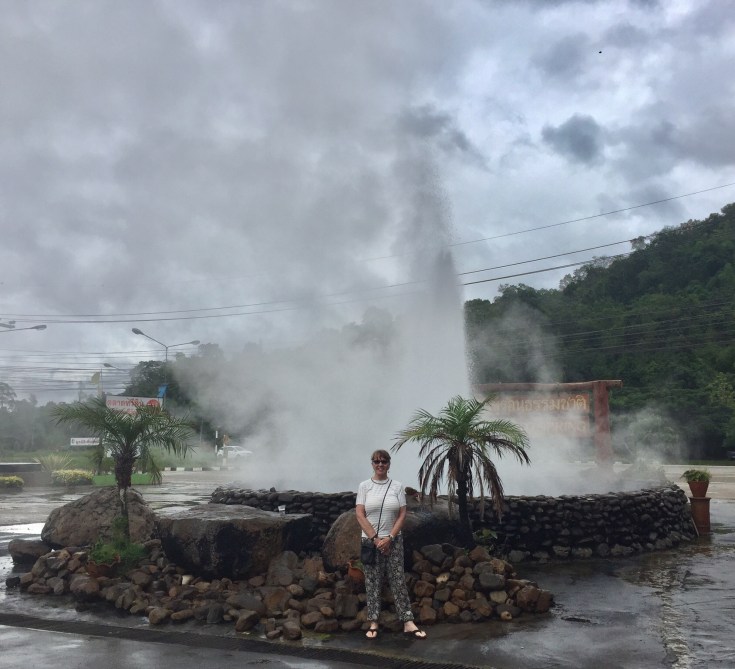 The trip back to Bangkok was long but we traveled over several days with stops at roadside plazas. We took a break at one plaza with hot springs in the parking lot where you could have your quail eggs hard boiled.