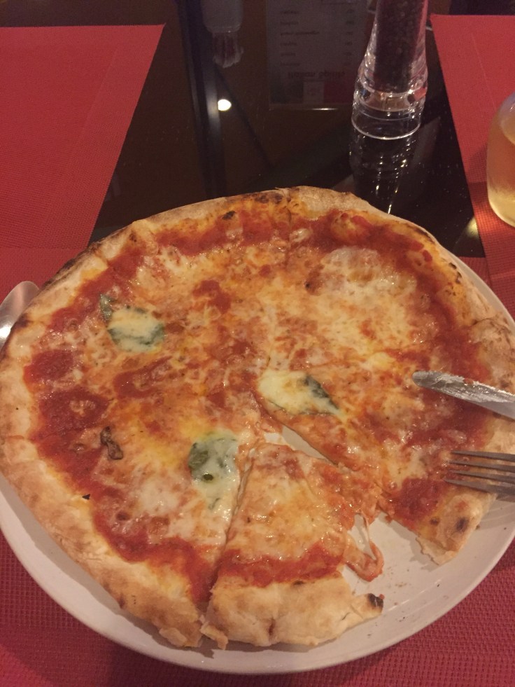 I have to confess that I fell off the Asian food grid and indulged in an “honest to god” margarita pizza (no rice on it). We were told we could take some treats (candy, paper, crayons ,etc.) to our visit scheduled for the next day to the “long neck women” hill tribe. I took a take-out pizza and the teacher and kids loved it– no stuffy old school supplies from Barb.