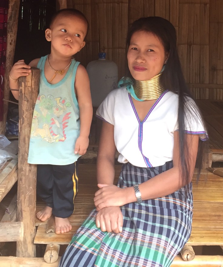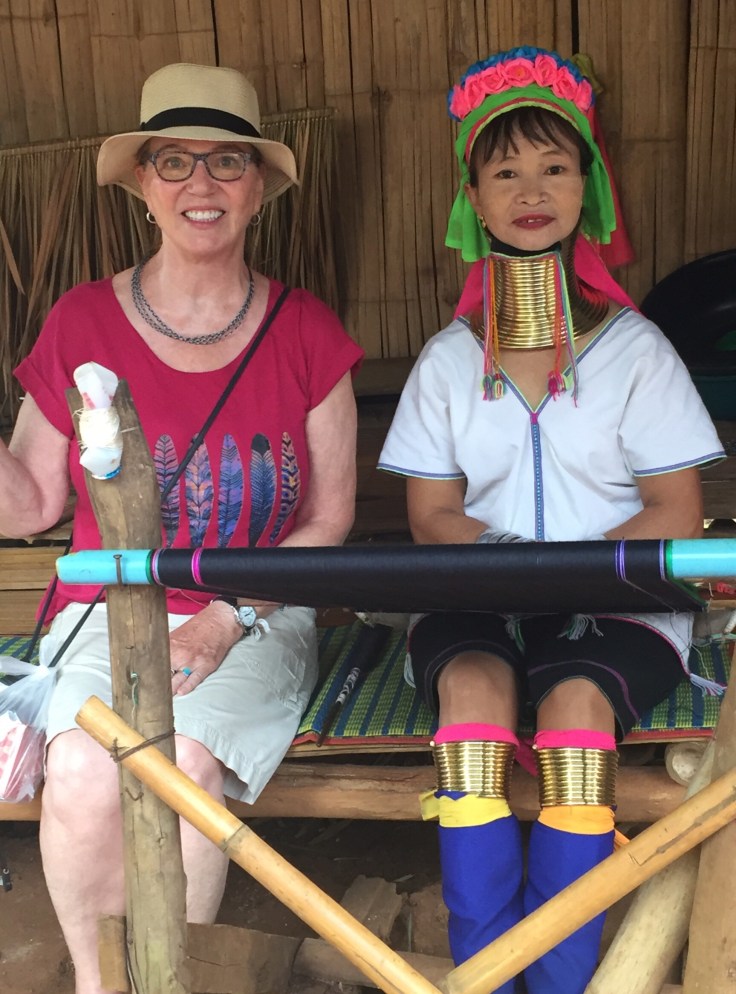 There is some controversy about the exploitation of this tribe by tourists. We were very respectful and supported their economy with purchase of their crafts. The women receive a ring every year from 5 to 21 years of age. Their necks are not extended but the rings press their collar bones and shoulders down into the chest cavity. They also wear rings below their knees.