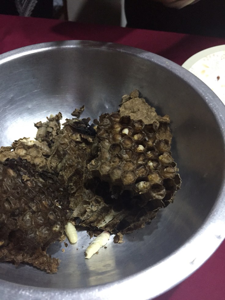 One of the special foods we had was roasted bee larvae. It was creamy and had a mild flavor. If you forgot that you were eating bee eggs–it wasn’t too bad.