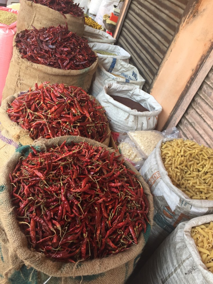 A walk through the town center gave us insight into daily life in this city where people shop daily for food, spices and flowers for temple offerings: