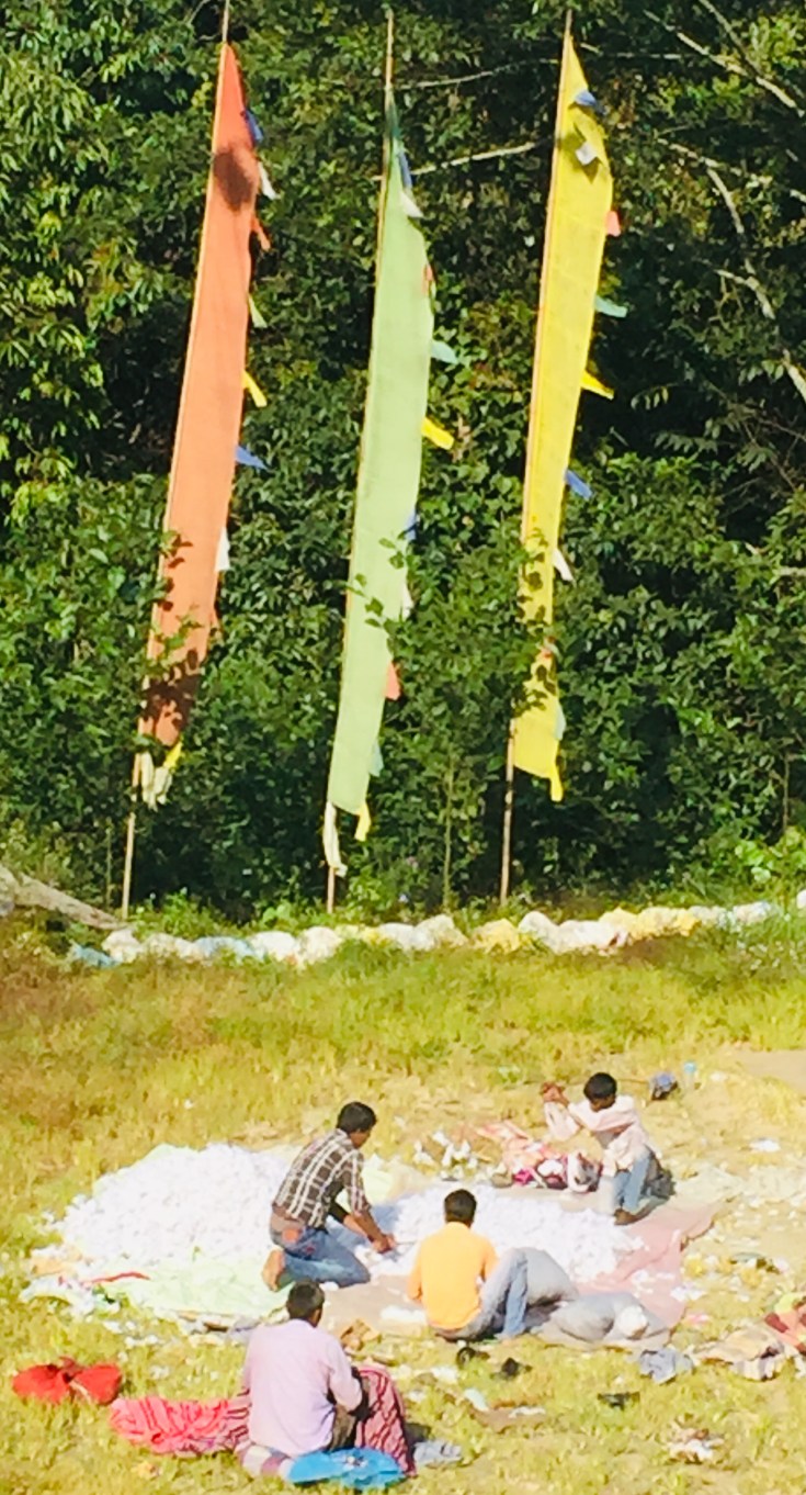 We are traveling by van in the northeast corner of India–in the foot hills of the magnificent Himalayas. That means narrow roads, washed out areas and crazy drivers. I’ve learned my lesson and now I sit in the back of the van, put my i pod buds in my ears and I don’t look out the windows.