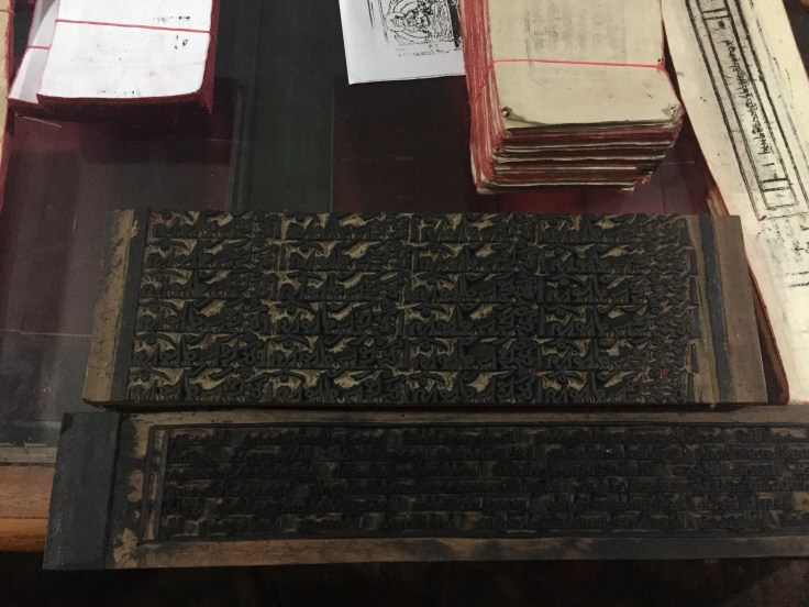 The monks print manuscripts and prayer flags with plates that are centuries old: