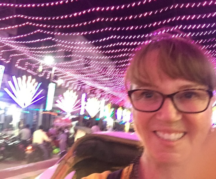 This is a selfie of me in a bicycle rickshaw going back to my hotel (I may look happy but I had resigned myself to the fact that if I had to die this was the place to do it):