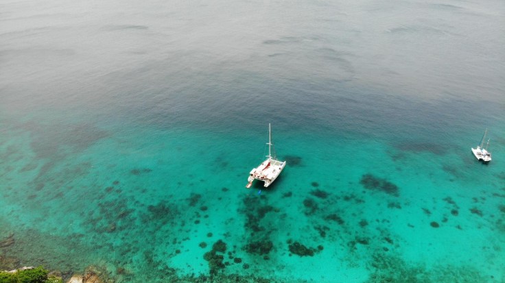 Mid week we dropped 4 fellow sailors off and picked up two very nice young men from Germany. One brought his drone on this trip and he provided us with incredible sky view pictures.