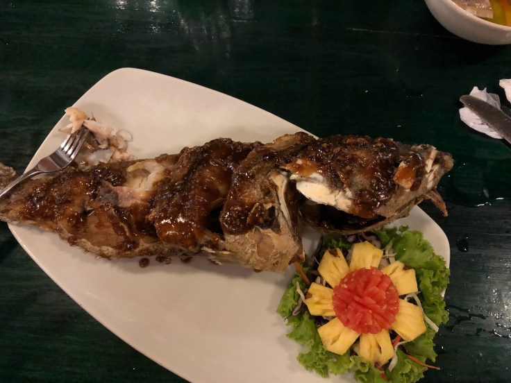 For one of my last meals I went for a whole Grouper in garlic sauce. Delicious! We finished up with some fried bananas to dip in honey.