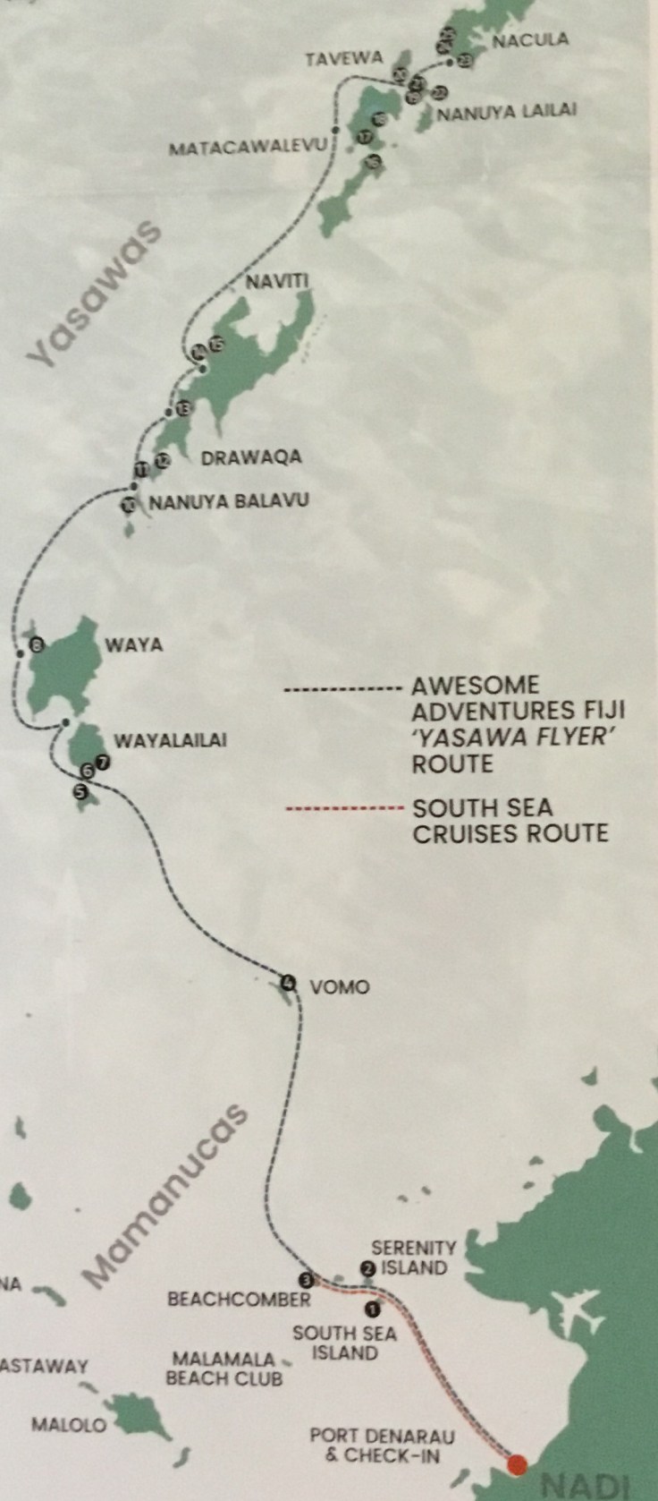 I made my way north on a passenger ferry that would take 4 hours ($200 Fiji) to get to Nacula and the Blue Lagoon Resort. It took that long because we made multiple stops for drop offs and pick ups along the way. A “long boat” would come out from shore for the travellers and the luggage.