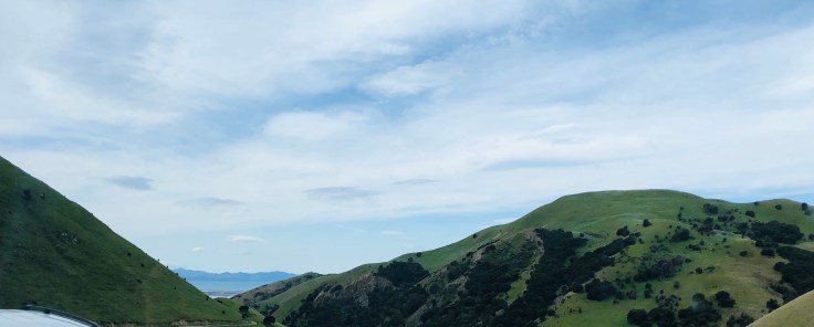 The north island is the result of volcanic activity millions of years ago. There are a few mountain pecks but mostly rolling hills covered with a carpet of green grass. The grass looks like it has multiple ledges which is caused by the ash settling down over the years.