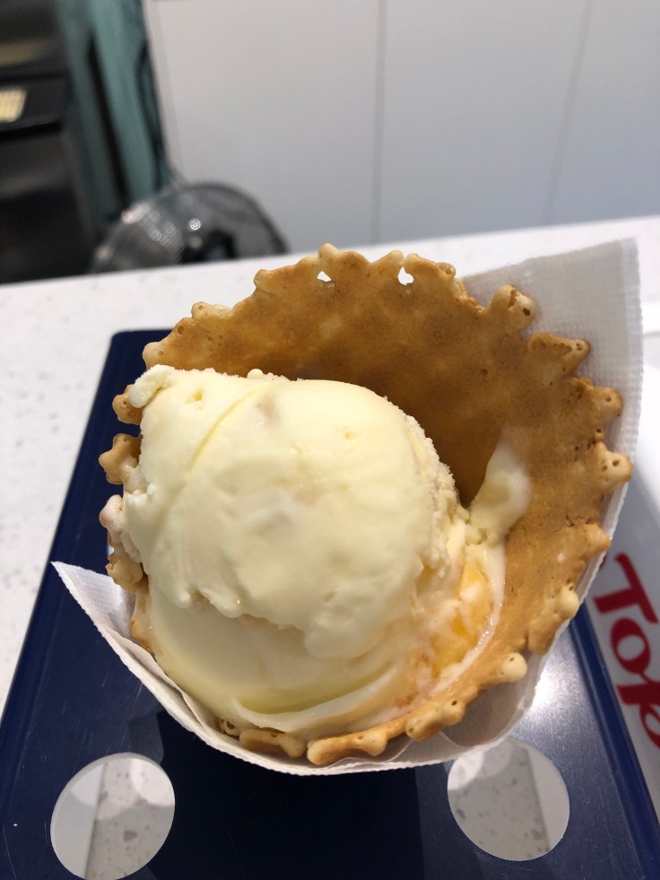 I have had the opportunity to have lamb at almost every dinner but I was always disappointed when it was cooked to “a second death”. On Eat Street I had a rack cooked rare and topped dinner off with “hocky pocky” gelato from Lady Jane’s ice cream parlour. This is a NZ favorite that is vanilla with little pieces of honey comb-yummy.