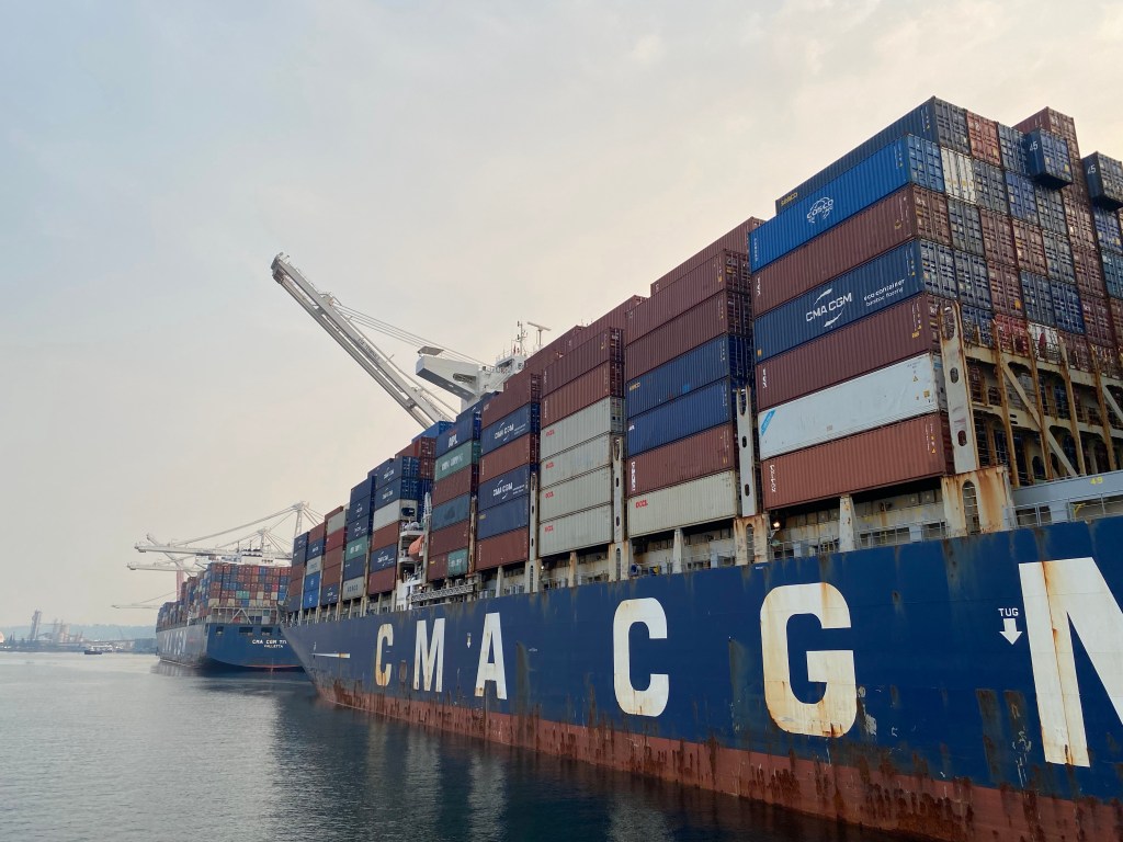 We started our tourist excursion with a boat tour of Elliott Bay. Had great views of Seattle and we got to be “up close and personal” with a giant container ship that was unloading.