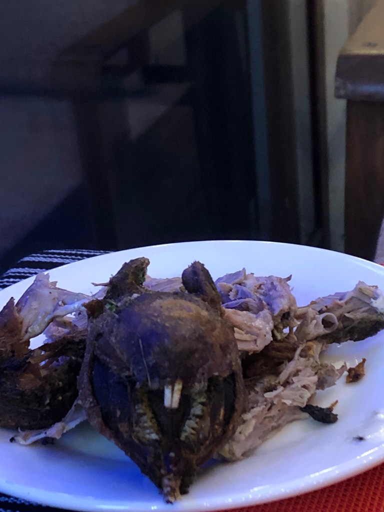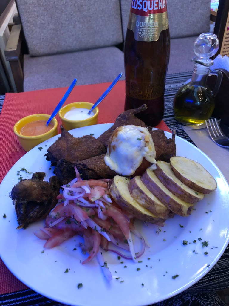 I got to soak in the local hot springs and enjoy a Guinea Pig dinner. It was tasty and nice and crisp. You can see his two little front teeth.