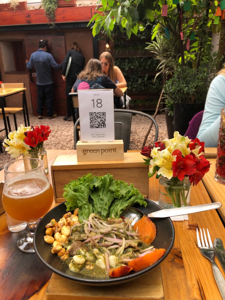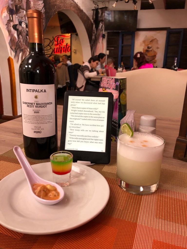 Pisco Sour and Peru Flag with a side of shrimp ceviche