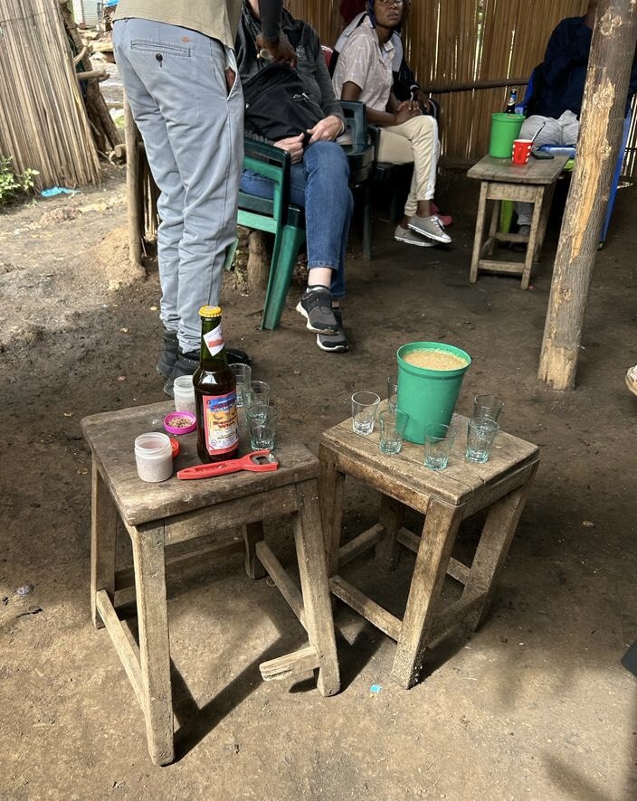 A banana beer and wine tasting at a local “craft” shack. Beer made from bananas and mullet. It’s in the green cup. They pass it around. I guess it is an acquired test.