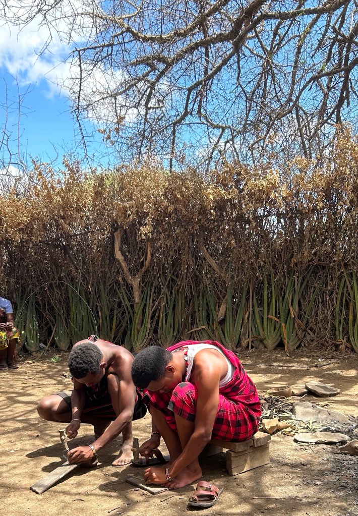 The Chief (of 2000 tribespeople) showed us how they start a fire with cedar and acacia sticks.