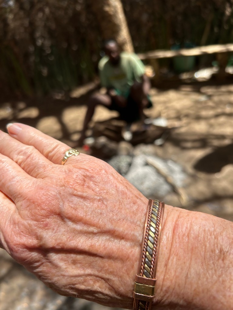 The last stop today was to a Blacksmith tribe. This tribe scavenges for metal everywhere. They make very sharp arrows and jewelry. The bracelet I bought was made out of a brass faucet.