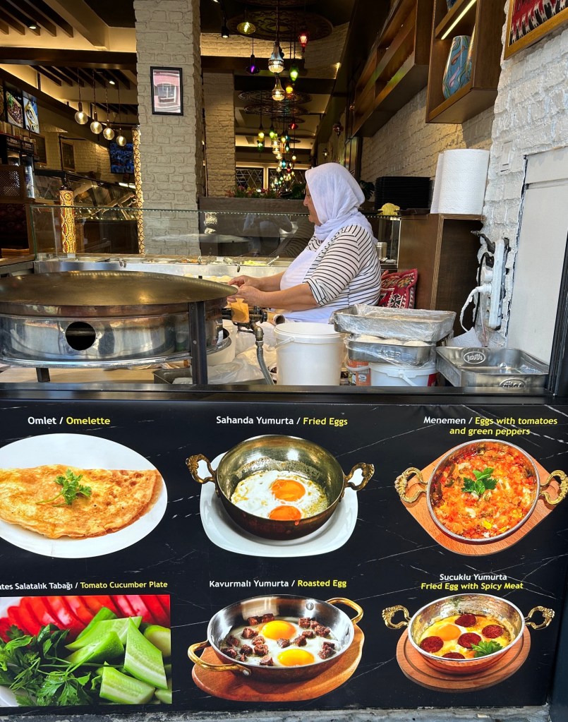It reminds me of NYC married to Rome. There are narrow alleys, hills!tons of restaurant and “stopped” traffic EVERYWHERE! Stores selling everything from “open air” exposed beautiful spices and Turkish treats to pots, hardware and clothes, and even fasteners (you can buy the little machine to insert your own snaps).