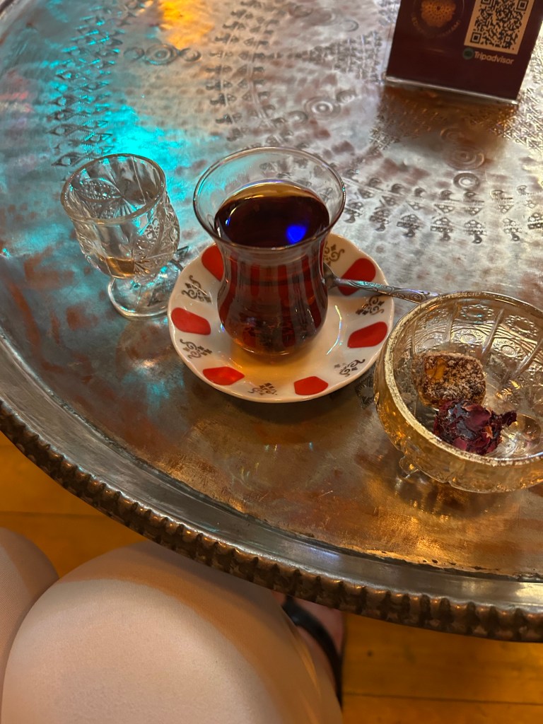 After being dried off I was led to my clothes and them deposited to a padded anti chamber and offered a peace offering of Turkish herb drink, Turkish tea and some Turkish Delight candy.