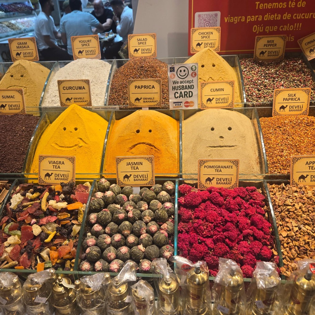 After a cruise on the Bosphorus Strait that runs right thru the middle of Istanbul we had a seafood lunch at a shoreline restaurant. It was then on to a spice market visit.