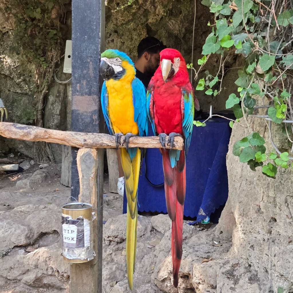 Saw some pretty parakeets that were tourist attractions.
